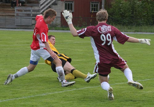 putta ballen i mål bak Sindre Rise.