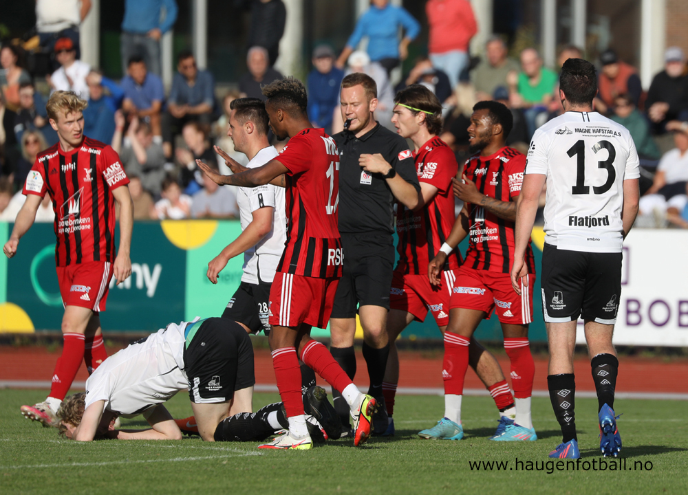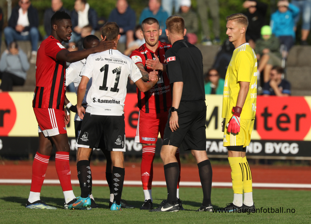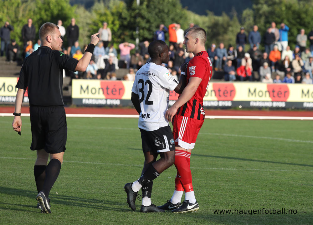 Rødt kort: Mathias Helgheim, Førde (to gule kort 50. og 90. min+8) og