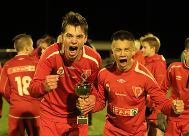 NFF Sogn og Fjordane G14 jublar etter at Ulrik Nielsen utlikna til 1-1